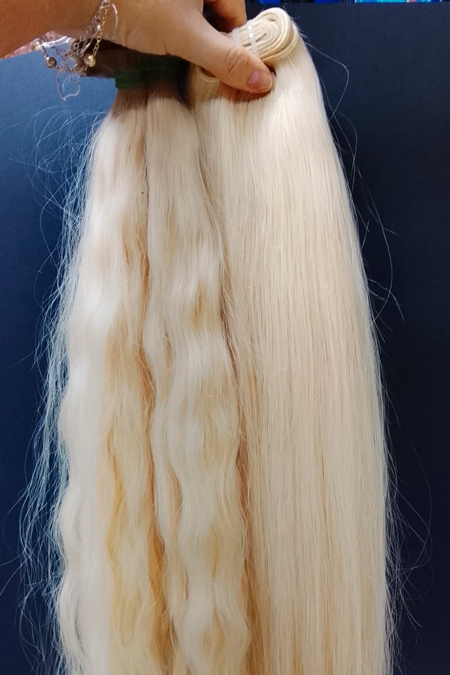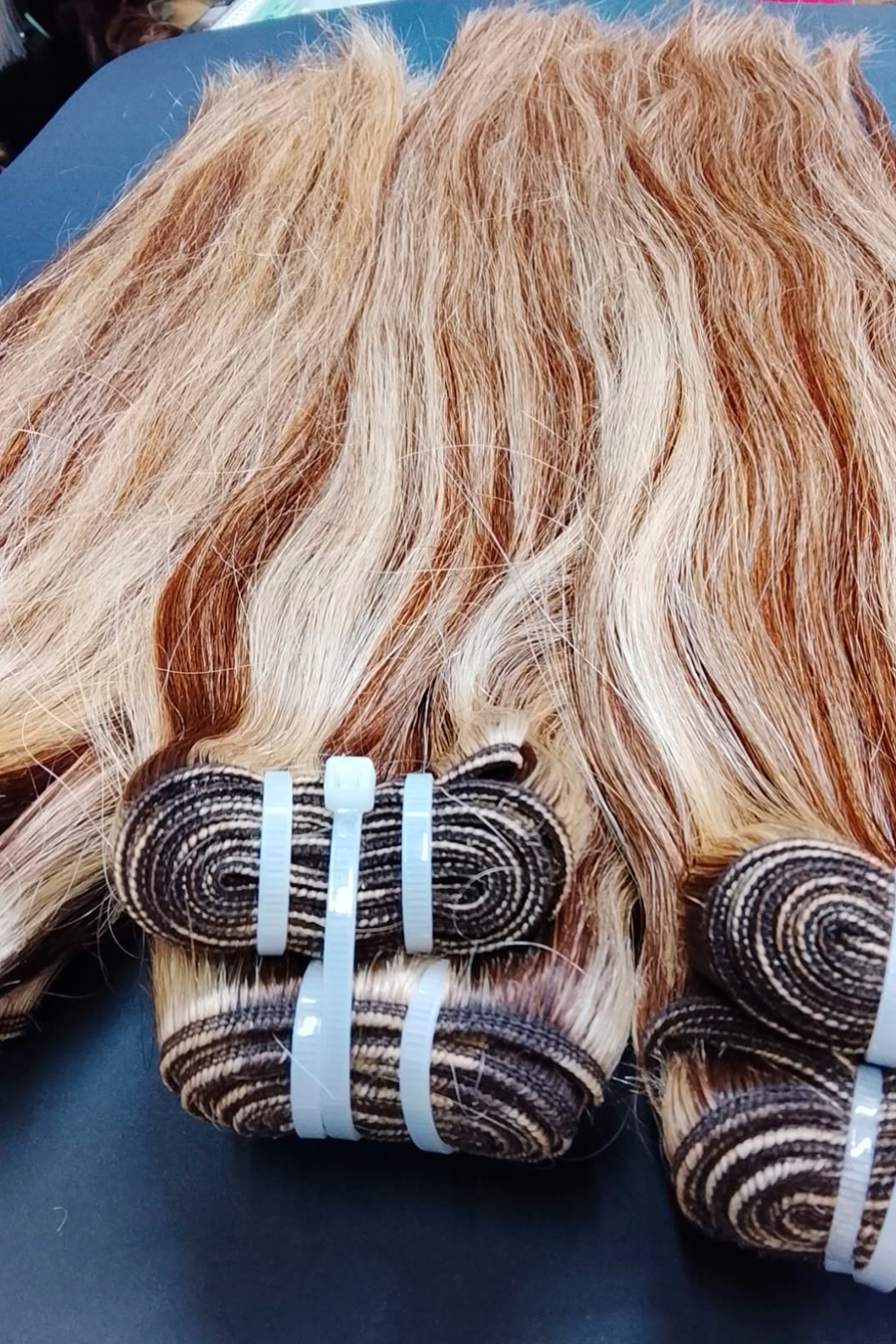 Las extensiones de cabello cosido (o weft) son tiras largas de cabello —generalmente natural— unidas mediante una costura fina y resistente en la parte superior. Estas tiras se integran a tu cabello mediante técnicas profesionales como trenzado, microanillas o costura sobre una base segura.